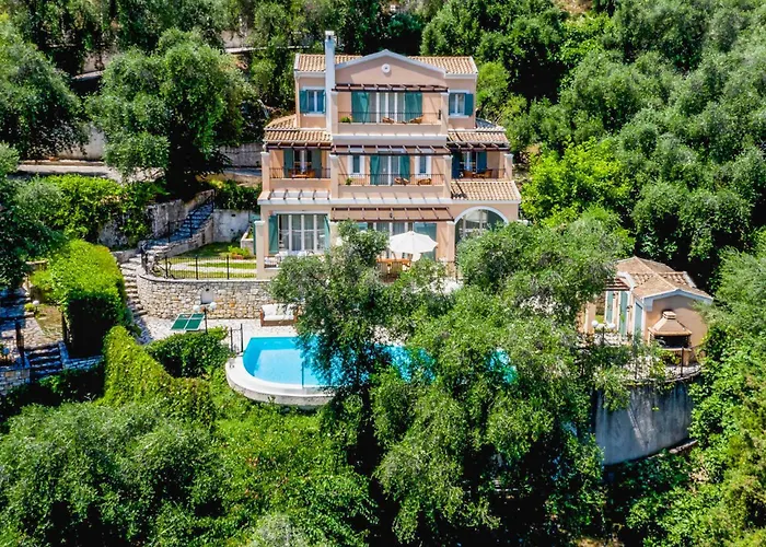该住宿场所还为住客提供设施齐全的厨房. 从别墅到最近科孚岛国际机场只有30公里. 客人可以在露台上放松身心,并在室外游泳池游泳.
